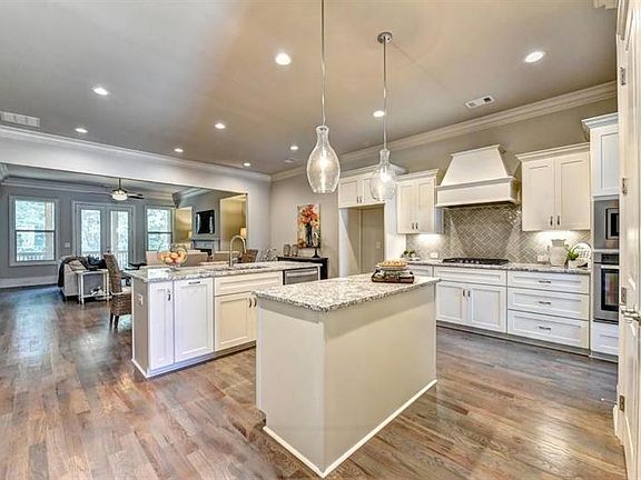 - Kitchen Features: Eat-in Kitchen, Pantry, View to Family Room, Stone Counters, Kitchen Island, Cabinets White