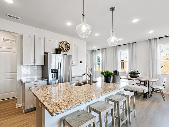 *Parade of Homes gold winning floorplan* Upon entering the Blayre, you are greeted by a foyer that leads you into a large dining area, a spacious kitchen and a Great Room. The kitchen boasts a large island with a breakfast bar, granite counter tops, stainless steel appliances, large pantry and drop zone, an area perfect for organization. The owner’s suite, 2 additional bedrooms and large laundry room with optional laundry tub are on the 2nd floor. The end-unit Blayre includes a 2-car garage.