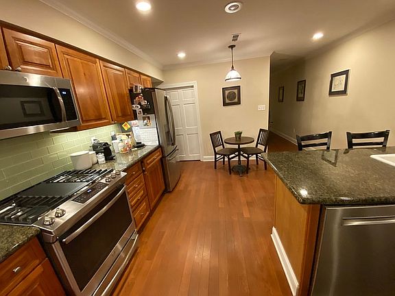 Water views from gorgeous parapet-walled decks on two sides of home. New 2019 GE and Bosch stainless steel kitchen appliances. Eat-in kitchen. New hot water heater; freshly painted interiors and exterior stucco wall. Doggie door to backyard with fish pond, beautiful light from skylight with handheld controller to open and close. Barbecue on the patio off the kitchen. Well-maintained with crown molding on first floor, and full-sized washer dryer on second floor. New ac unit 2018. OFF-STREET PARKING for two cars in detached garage and parking pad one alley north. Large closet space, first floor half bath (no awkward going up or down for guests during dinner parties). Quiet tree-lined street with caring neighbors. All the charm of South Butcher’s Hill - doesn’t look much different from 100-year old homes, but built from the ground up in 2004 (charm without the headaches); quick walk to Patterson Park with many Hopkins staff and residents as neighbors who were make use of close proximity to hospital.