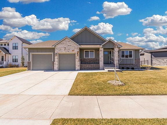 It's a THREE Car Garage....and its more than just a place to park — it's the perfect spot for a man cave, workshop, or storage for motorcycles, boats, and all your favorite toys. Whether you're a hobbyist or need extra space for all your gear, this garage has what you're looking for. And if you've been struggling to find a home that will fit your truck...YES, this one will fit your extended truck bed....easily! Step inside, and this stunning, like-new 4 bedroom, 3 bath home with a walkout basement will wow you. Built just a few years ago, this immaculate home gives you all the new construction feels, without the new construction price tag. Your new home boasts an open, airy layout where the modern kitchen flows seamlessly into the living and dining areas, making it ideal for entertaining. The covered deck and huge patio are a perfect addition— ideal for relaxing evenings with a glass of wine or weekend gatherings and morning coffee. This delightful home has a master on the main, as well as a main floor laundry room, a walk-in pantry and custom blinds throughout. With contemporary finishes, abundant natural light, and versatile spaces, this home is truly move-in ready. But wait, there's more! The neighborhood features a swimming pool, soccer field, basketball, indoor and outdoor pickleball courts, walking paths, serene ponds and coveted Goddard schools! Don't miss your chance to make it yours!