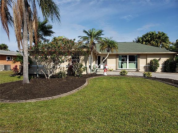 LOCATION LOCATION LOCATION! This SE Cape home is in the perfect location! Walk to downtown Cape Coral with all the shops, outdoor festivals and restaurants! City water and sewer in and PAID - no assessments. This 3 bedroom 2 bath home with POOL is updated - and ready to move in. You'll love the cozy modern farmhouse feel with open floor plan and large kitchen, living and dining room all together. The kitchen has wood cabinetry and granite countertops with stainless steel appliances. There is a breakfast bar as well as sliders from the kitchen and dining areas to the screened lanai and HUGE pool! The outdoor living area is incredible, with multiple seating areas, room for lounging, grilling, swimming or outdoor dining. The master bedroom and bathroom are separate from the other bedrooms for privacy, and have dual vanity as well as separate soaking tub and shower. There is tile and wood flooring throughout & a cute indoor laundry room with sink. Don't miss the huge closet next to the laundry that could be a walk-in pantry. There is lots of room for parking on the curved driveway and sideload 2 car garage. This one is going fast! Make your appointment for a private showing today!