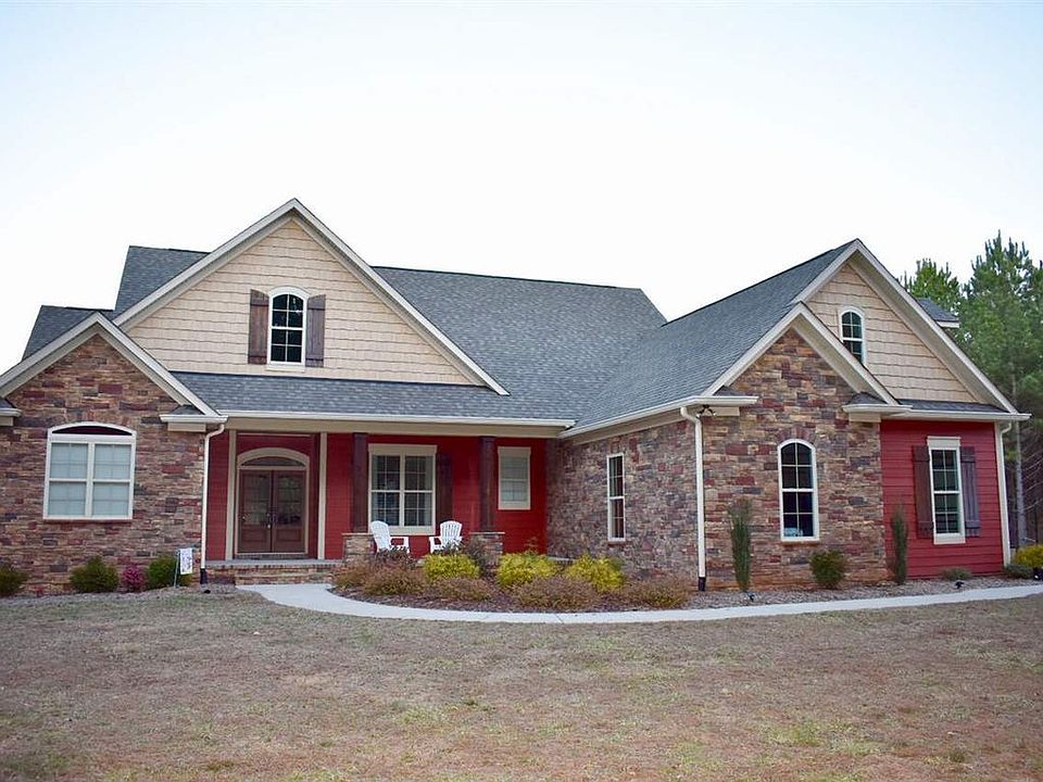 2014 custom built craftsman-style home with tons of upgrades. Split bedroom, open floorplan w/ 4 inch hardwood floors in main living area, granite countertops, custom cabinets, front porch cedar columns, mud room, custom master tile shower, screened-in porch, covered patio and full unfinished basement. Very private setting w/ over 14 acres. Only 12 miles from Tryon International Equestrian Center.
