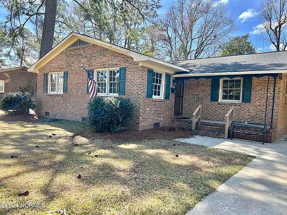 Welcome home to this cozy brick ranch located in the established neighborhood of Tryon Park on the East end of Havelock. This 4 bedroom/2 bathroom home is just minutes from local grocery shopping, restaurants, schools, medical facilities, and MCAS Cherry Point. Further East, about 20 minutes, is our beautiful Crystal Coast Beaches and all they have to offer. While the home is move in ready, and fully functional, there is still room for Buyers to put their personal stamp on it. All bedrooms and the hallway are carpeted while the other living space features newer laminate flooring. The home has been professionally painted, cleaned, and the carpet has been professionally cleaned, as well. There are french doors right off the dining area which leads to a 10x12 concrete pad which is open to a partially fenced yard. Laundry is located right off the kitchen when entering from the carport. This home was built in 1969, is 1452 sf, and on a .432 acre lot. HVAC was manufactured 11/19. Hot water heater was manufactured 03/2020. Roof is in good shape. All appliances convey; new Kenmore Elite refrigerator, stove, and washer and dryer. Home features a carport with room for 6 vehicles to tandem park.