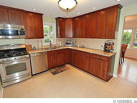 Beautifully updated & maintained 3 bedroom colonial near Lake Ontario! Featuring a Remodeled Kitchen with Granite Counter tops, stainless steel appliances,Tiled floors & New Cabinets, Beautiful hardwood floors throughout,Beautifully updated bathroom. High efficiency & central A/C(2010) furnace, thermopane vinyl windows throughout, Other features include: Vinyl siding,large newly painted deck, fenced in yard,1 car detached garage,Freshly Painted, partially finished basement with working half bathroom. Great fenced in yard in quiet neighborhood, don't miss out!
