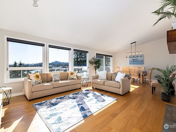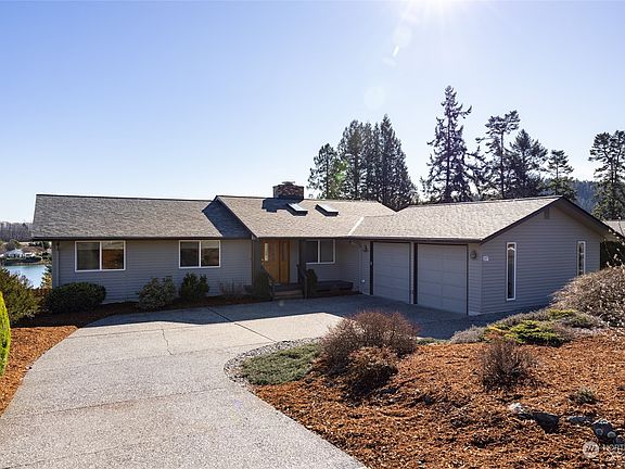 Outstanding views from this lovely Main Level Living home with great natural light flowing throughout. The living/dining room has vaulted ceilings & fireplace. Sliding doors lead out to a spacious deck to admire the stunning views. Kitchen has maple cabinets with quartz counters and opens to the breakfast room. Main bedroom has a beautiful, remodeled en-suite bath. Two additional bedrooms & bath upstairs. Lower level is a separate apartment with 1 bedroom & separate living space w/a full kitchen & separate entrance. Would make a great mother in law apartment with indoor staircase. Media room plus 400 sf shop/storage area. Total 4BR/3BA, 2 car gar. New roof, appliances, flooring, paint and so many updates! Enjoy Shelter Bay amenities.