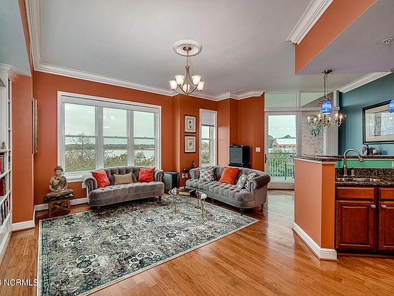 Views! Views! Views! You can see for miles from this beautifully appointed two bedroom, two bathroom condo with custom moldings and built ins, upgraded light fixtures, wood flooring, stainless steel and granite in the kitchen, high ceilings, double sinks in the master bath, and much more. Relax or entertain friends and family on the private balcony while you watch gorgeous sunsets. Unit 227 features a unique floor plan that is rarely available and is among the most sought after in the community. Sky Sail is New Bern's only waterfront, amenity-rich Downtown condo community with garage parking, pool and fitness center. In the heart of everything New Bern has to offer, the home has a newer HVAC system, washer and dryer, custom moldings and many other upgrades. This condo is a true two bedroom versus a one bedroom with a den. Preferred attorney is Steve Bell. Preferred lender is Alpha Mortgage.