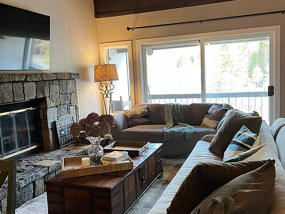 Come stay at this peaceful and centrally-located condo. This is an elegantly remodeled top floor unit with high-end finishes located in the heart of Olympic Valley. This 2 bedroom/2 bathroom condo features high-vaulted ceilings and an open-concept floor plan. Great amenities include a pool, hot tub, and tennis and pickleball courts. You'll be minutes away from the Palisades Tahoe and a short drive from Tahoe City and Truckee. Biking, hiking and river trails are available right from your doorstep. An on-demand shuttle runs daily shuttle to Truckee and Tahoe City (schedule is subject to change). No smoking. Cleaning fee ($250) not included in rent. Unit is available until end of 2025. minimum lease term is 3 months.