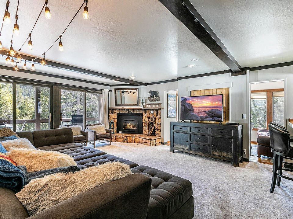 This three story end unit with 180 degree views of the forrest creates a uniquely private environment; a fantastic location within the Tavern Inn. All bedrooms are ensuite with the ability to "lock off" the ground floor bedroom into its own private room with private entrance. The dining room receives incredible light from its vast windows and feels as if you are floating in the trees. Panoramic mountain views from the master bedroom, a bonus storage room, and plenty of space for the whole family!