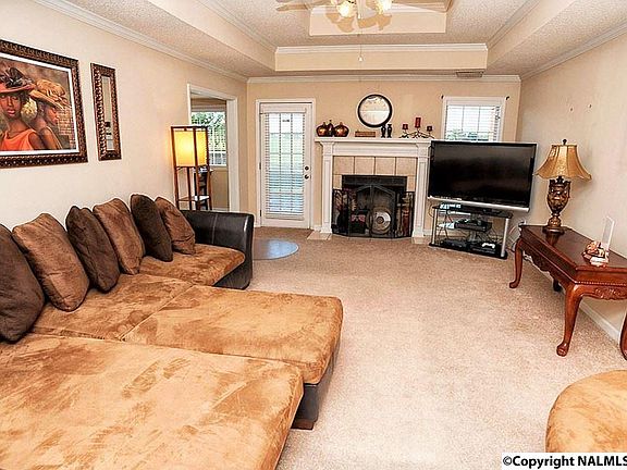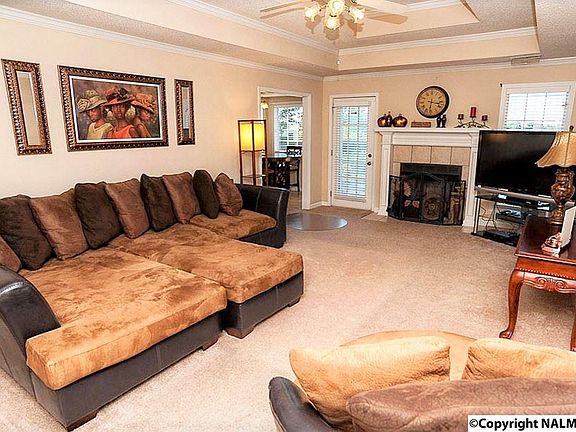 - FAMILY ROOM DESC: Carpet, Crown Mold, Fireplace, Trey