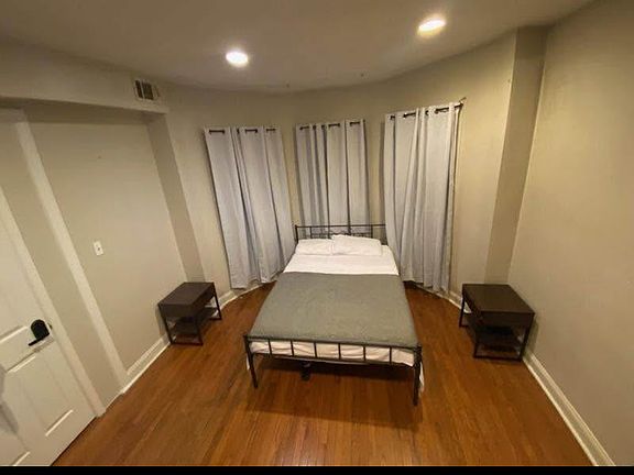 Well-lit Partially Furnished Bedroom with private bathroom . Other house occupants- 2 women, 1 man, all working professionals. Each room is limited to 1 occupant. No pets. Large kitchen, large porch, Laundry, Wifi and all utilities included. 12 mo lease, Deposit equal to 1 mo rent. Once a month common area cleaning included. Single occupancy room Partially Furnished Private Bathroom All utilities, wifi included Full use of laundry and kitchen Quiet Comfortable home Text or email only to view