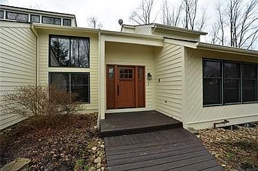 Secluded home banked by trees in a great location. Open floor plan with soaring ceilings and walls of windows. Gourmet kitchen with shaker cabinets, granite counters and top of the line appliances. Spacious rooms and almost 3000 square feet of space. First floor laundry and attached garage. Potential for a first floor master or there is a master on the second. Large loft area with built-in shelving all overlooking the first floor. Large deck and gazebo. Move-in condition and pristine.