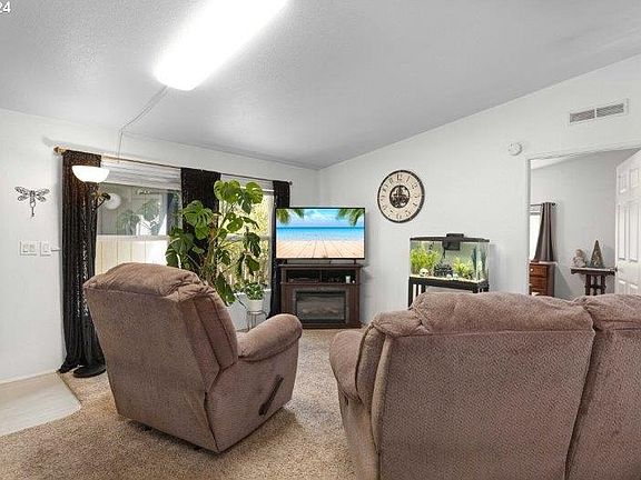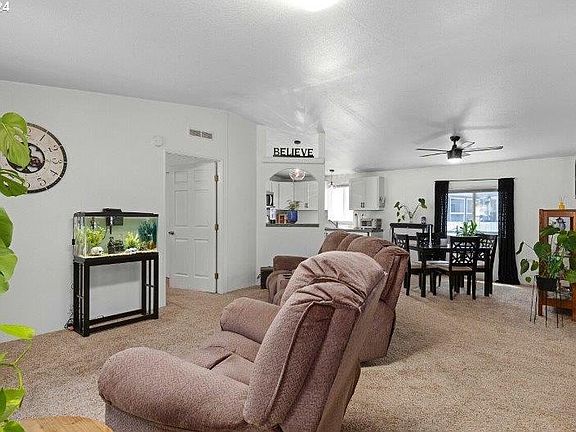 Must see 3 bed 2 bath home in River Place park. This home has a large fenced backyard butted up to the parks green space and walking trail affording it extra privacy not all homes in the park have. The split floor plan with den provides ample space and storage. Most appliances are just a couple years old. The back yard has a garden shed, raised beds and plenty of room for the outdoor enthusiast.Space Rent is $830 per month