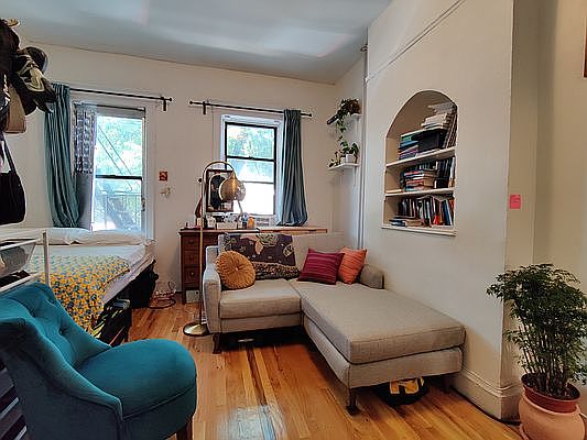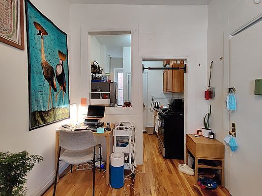 Stunning, clean and sunny studio apartment with kitchenette in Crown Heights Lock in this deal for an OCTOBER 1 move date! *ALL PHOTOS AND VIDEO ARE OF THE EXACT SPACE FOR RENT* Email today to schedule a tour Heat and hot water are included in the rent. Located on the 2nd floor of a quiet and well maintained 12 unit building just a short walk from Eastern Parkway and the 2, 3 and 4 trains! NO FEE Total of 3190 due to move in