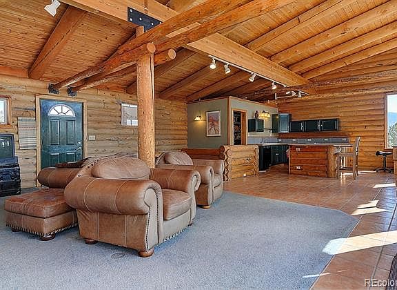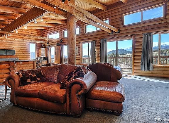 Price reduced on this solid log home with the million dollar views of the Sangre de Cristos. Energy efficient so your propane bill will be the monthly minimum. Nearly 2500 sqft with two separate kitchens. Live up and rent the downstairs with it's own outside entrance. Another possibility is have a mother in law downstairs. Or, just a big happy home. Lower acreage has 2 year round streams, springs and two ponds. BLM right across the street. 2 fenced horse pastures for the horse lovers. Augmented well allows for horses. Enjoy the seasonal pond from the front balcony. Nice separate workshop that doubles as a green house. Monarch Mtn and Gold Medal Trout Fishing all in the neighborhood. This is truly a beautiful home that can be enjoyed for a long time.