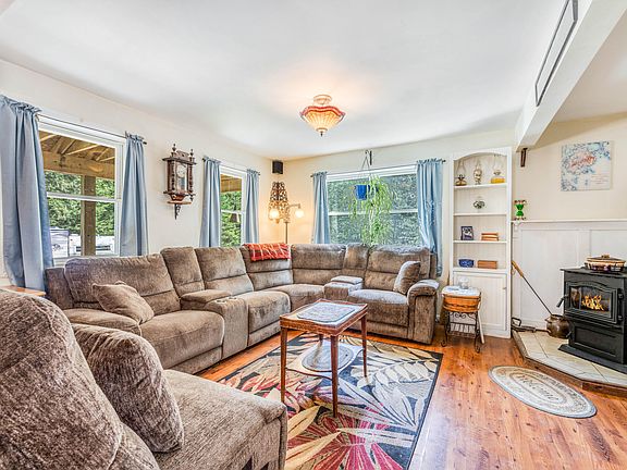 Looking for privacy? This is your spot! Charming cape style home nestled among the trees. Enjoy coffee on the porch each morning and the sun set each night. This well constructed home is not cookie cutter and has a very appealing interior layout. Home was designed for 2 bedrooms & an office but could be utilized as a 3 bedroom home if necessary. Super cozy year-round with the pellet stove in the living room. Use the electric baseboard only as a backup if needed. Ample storage space in the basement with double opening doors to get larger items in. Gravel road is maintained all year! Get your showing scheduled now.