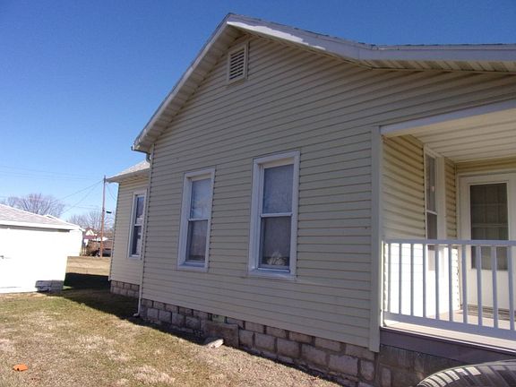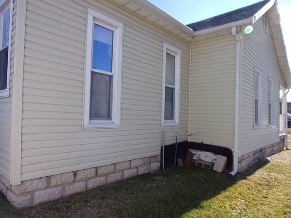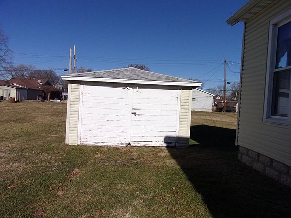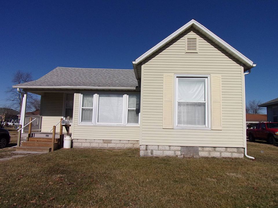 This property is in a residential neighborhood and is improved with a 900 square foot (per court house) home and a detached 1 car garage with concrete floor. The home consists of large living room/dining area, kitchen, 3 possible bedrooms, bath, and laundry room. The exterior roof, siding, replacement windows, front porch, and electrical has been updated in last few years. The heat is a floor furnace and there is no air conditioner. This is a well maintained home. One room basement room with exterior access has the hot water heater and the sump pump.