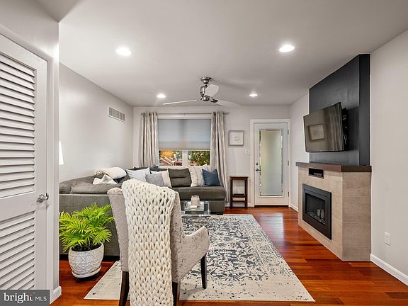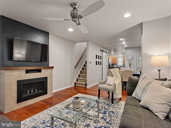 This could be the home of your dreams! Don’t miss the opportunity to move right into this stunning Narberth borough home, kept in immaculate condition. The 2 bedroom 1.5 bath property features Brazilian cherry and Asian rosewood floors, exposed brick walls, and a warm and comforting ventless fireplace with porcelain-tile surround and black walnut mantle. A recently renovated kitchen with raised-panel maple cabinets, Corian surfaces, brushed nickel hardware, stainless appliances including a new Bosch dishwasher, and a timeless subway tile backsplash - welcome you into this home. Upstairs you will find the main bathroom with side-by-side double vanity, glass tile backsplash, and a frameless glass shower with vertical staggered ceramic tile. Light floods the primary bedroom showcasing spacious wall-to-wall organizer closets and an exposed brick feature wall. The versatile 2nd bedroom gets great natural light and allows for plenty of storage with its own large walk-in closet. An industrial barn-style door leads to the cozy partially finished lower level with elegant built-in cherry cabinetry and a half bath. This space is completely customizable to your ever changing needs and can be used as an additional living area, home office, gym, or as it is currently used. Head outside to a large fenced outdoor patio offering a private escape or intimate garden oasis. All levels are hard-wired for data/TV, lower level wired for surround sound making any room in the house ideal for working from home or entertaining. Walking distance to the SEPTA Regional Rail train allows for a quick ride to Center City Philadelphia. Make this charming turnkey house yours!