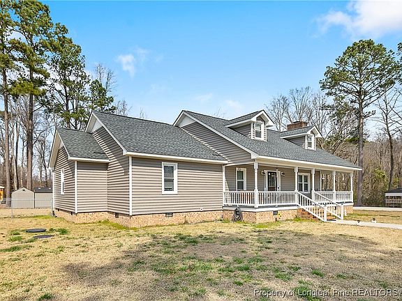 Discover a serene retreat on 5 acres in Autryville, surrounded by tranquility. This charming home boasts a large covered front porch, a spacious deck off the main bedroom that opens to a fenced area, and a covered screen porch off the kitchen/dining area, perfect for relaxing and entertaining. Inside, you'll find quartz countertops in the kitchen and bathrooms, a butcher block kitchen island, a breakfast bar, and stainless steel appliances. The expansive pantry and abundant storage add convenience, while luxury LVP flooring enhances the kitchen, bathrooms, and upstairs bonus rooms. Hardwood graces the foyer and stairs, with cozy carpet in other areas. Additional features include a cozy electric fire insert, a 14x14 wired shed, a 2-car garage, and a 1-car port. Chain-link fencing covers 6,000 sq. ft. With two upstairs bonus rooms, this property offers space, comfort, and limitless potential! What's there not to like? **All offers to be submitted by 12 pm on Friday 3/7/25**