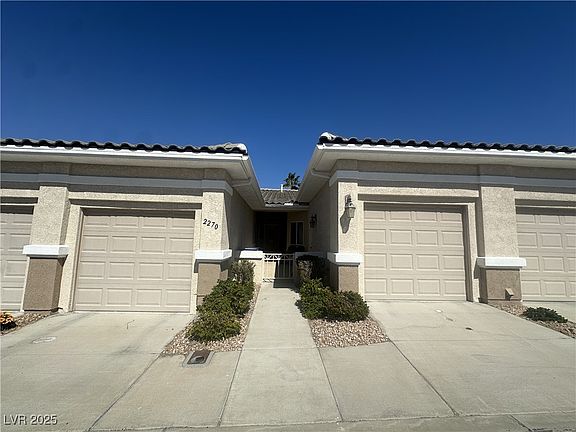 Nestled within the always attractive Quail Ridge community is this spacious single story home. 2 bedroom with 2 full baths and 2 single car garages. Two single car garages provide ample space for vehicles or additional storage. Plus, this gated community doesn't just promise a beautiful home; it delivers a resort like experience. Enjoy year round access to a heated pool, jacuzzi, a putting green, horseshoe pits, and clubhouse. The convenience of RV parking is the cherry on top, ensuring all your 'toys' are accommodated. Welcome to Laughlin. Feel free to stay on vacation!