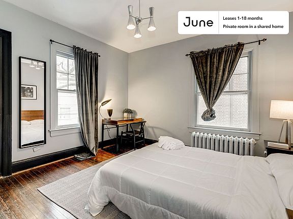 This Queen room in Woodley Park is available on a 12 month lease or a flexible short term (31 to 364 days) lease. You pick your custom start and end date. Monthly rent rate is determined by furnishing preference, move-in date and move-out date. Speak to a June representative for recommendations on the best stay duration for the lowest rate.