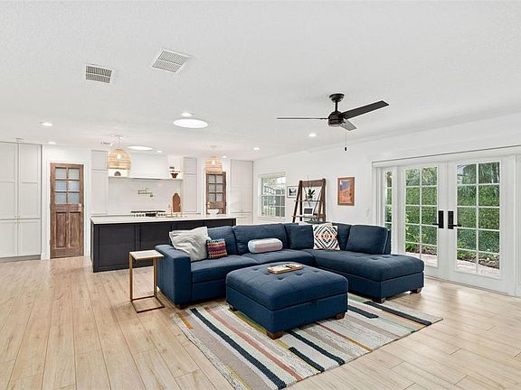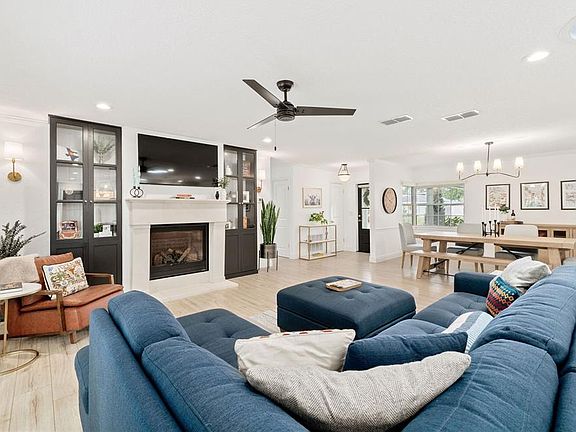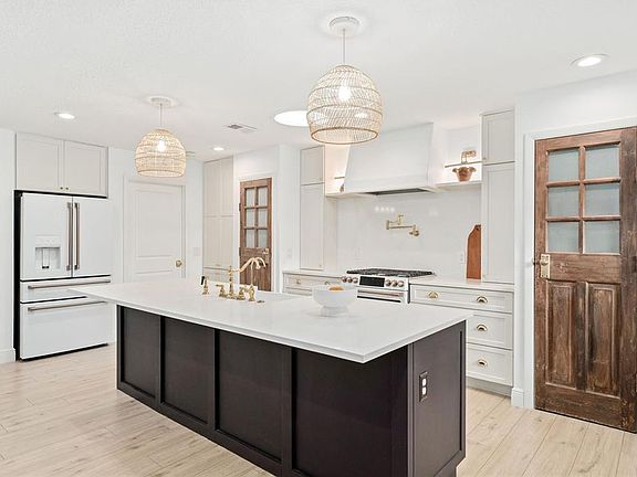 This beautifully updated 4-bedroom, 2-bath pool home offers 2,000 square feet of inviting living space on a spacious corner lot in highly desirable Maitland. The open living, kitchen, and dining area features a striking limestone fireplace, crown molding, custom built-ins, laminate wood flooring, and abundant natural light through French doors and skylights. The designer kitchen includes white and espresso cabinetry, white café appliances with antique brass accents, quartz countertops, a Venetian plaster–wrapped hood, a pot filler, a generous island with seating for four, and charming antique pantry doors. The primary suite offers a private retreat with direct access to the pool and a recently renovated ensuite bathroom with a quartz and wood vanity, a beautifully tiled shower with frameless glass doors, and dual shower heads. Additional interior highlights include a renovated hall bathroom, blinds and ceiling fans throughout, and a well-appointed laundry/mud room with floor-to-ceiling cabinetry offering tons of storage, a stainless sink, and included washer and dryer. The outdoor living space is exceptional! Start your day with a cup of coffee within the sanctuary of your ivy-lined courtyard with the serene sounds of the custom water feature. Finish the day with friends and family in your screened-in pool. Many other thoughtful outdoor details such as low-maintenance turf, paver walkway areas and front porch - perfect for relaxing, entertaining and enjoying year-round outdoor living. A side-entry two-car garage provides both convenience and curb appeal. Located within minutes of shopping, dining, and local parks, this home is zoned for top-rated schools including Dommerich Elementary, Maitland Middle, and Winter Park High School, and offers quick access to I-4, Maitland Community Park, and Lake Lily Park. This is the perfect blend of style, comfort, and unbeatable location. ROOF - 2025 HVAC - 2020 WATER HEATER - 2021 POOL HEATER & PUMP - 2023