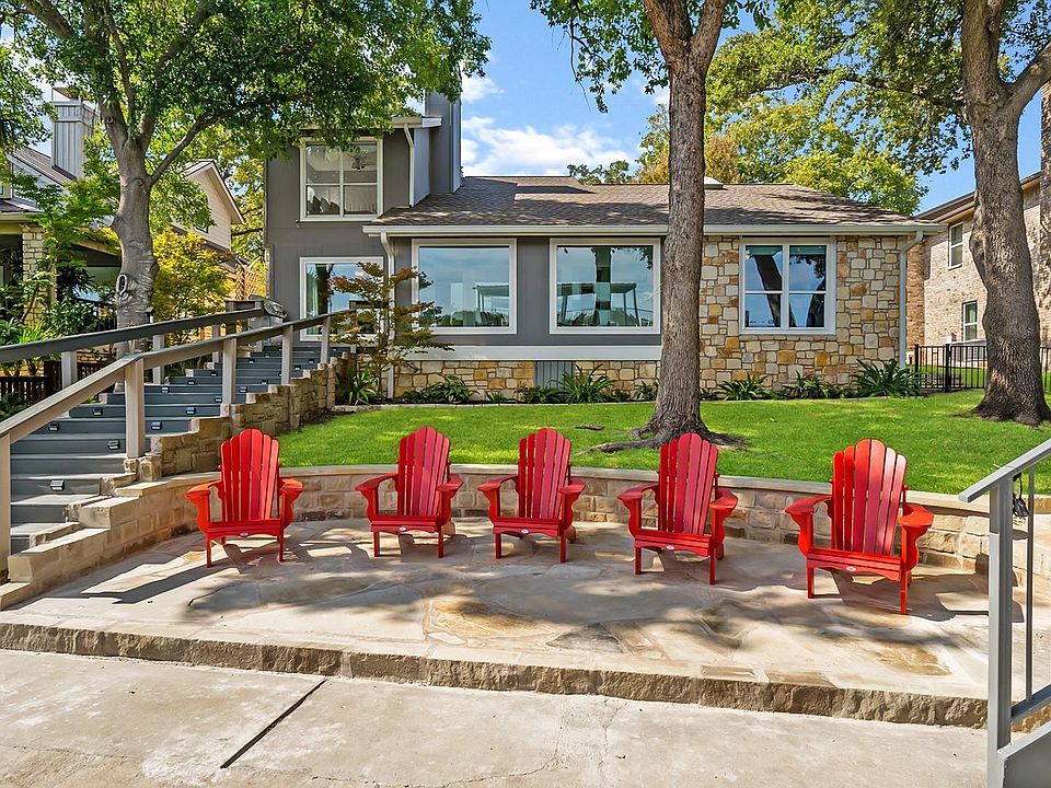 Discover your dream lakefront retreat on the premier stretch of the Colorado Arm of Lake LBJ! This updated 4-bedroom, 3-bathroom home is perfect for year-round enjoyment. The cozy living room features a stone fireplace and vaulted ceilings. The modern kitchen, with top-of-the-line KitchenAid appliances, opens to a dining area with stunning lake views. The spacious master suite on the main floor has a luxurious en-suite bath with a walk-in shower. An additional bedroom and bath on the main level ensure guest comfort, while two more bedrooms upstairs share an updated full bath. Large picture windows showcase serene south east views of the shaded backyard and Lake LBJ. Enjoy mornings in the sunroom or relax in the afternoons on the low maintenance TREX decking leading to a two-stall double-decker boat dock with a rooftop deck and bar. Perfect for a short-term rental, full-time residence, or private weekend retreat, this home offers excellent income potential. Furnishings are negotiable for a turnkey experience. Don’t miss this incredible opportunity on Lake LBJ!