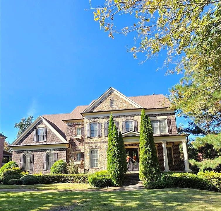 Located in the gated Stonehaven at Sugarloaf community, this rare four-story Madison floor plan sits on a quiet cul-de-sac. Featuring 5 bedrooms and 4 bathrooms, the home offers a rocking-chair front porch, open floor plan, guest suite on the main level, and 8-foot doors. The island kitchen overlooks a spacious great room with access to a tiled screened porch and sunken hot tub. The owner’s suite includes a sitting room, morning bar, and luxury bath. Additional highlights include a finished terrace level, media/bonus room with snack bar, and a three-car side-entry garage. Enjoy a level fenced backyard and resort-style amenities including swim, tennis, clubhouse, and fitness center. Conveniently located just 1 mile from I-85, with easy access to shopping and dining. Note: all pictures were taken before move out, now the house is vacant and no staging.