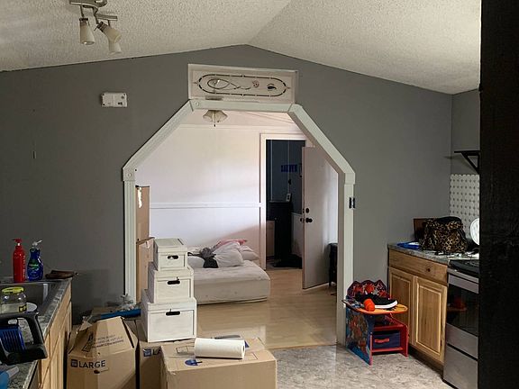 Affordable living! A single wide home with addition making this home a 3 bedroom, 1 bath. Living room and open eat-in kitchen, with remodeling (newer flooring, newer cabinets and paint). Property is in good condition, but in need of exterior enhancements. Detached 1 Car garage. Built in dishwasher, utility room. Gravel drive.