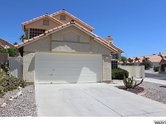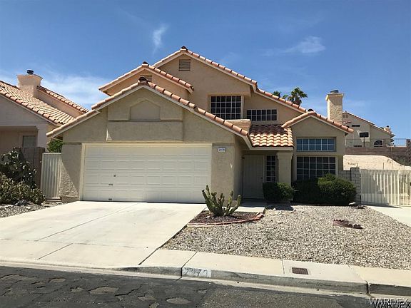 Large 1/4 acre corner lot in Laughlin! Loads of extras inside and out- landscaped, terraced back yard, block fencing, covered patio and raised 2nd level patio, large balcony deck of master, attached garage, huge RV parking area and thats just outside!! Inside nearly 1750 sq ft of living - new carpet & tile, granite counters, fireplace in living room, powder room + 1 bedroom on main level; 2 bedrooms, guest bath and master suite are upstairs.