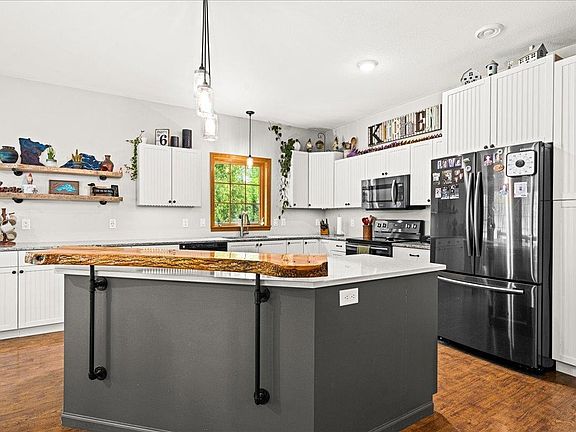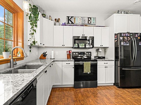 There is space for everyone! This beautiful 5 bedroom/3 bath home is just minutes from town on a 10 acres setting. Enjoy the wooded views and gas fireplace from the comfort of the living room. The updated open concept kitchen is spacious with granite counter tops and center island for gathering. On the main level you also have an office area, 2 bedrooms, laundry, mudroom and attached garage. Lower level is a walkout with 3 bedrooms, bath and a large family room. There are 2 additional bonus rooms. Outdoor space has updated decking, new slab, and new hot tub and gazebo. The roof, siding and boiler are newer! Don't forget about the additional 54x40 dream garage! There is room for all of your toys and it is partially heated and insulated.