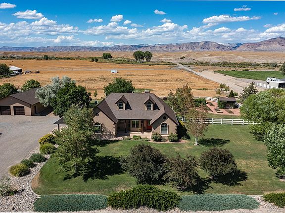 This picturesque estate in the desirable North Grand Junction area sits on nearly 2 acres with magnificent views of the Bookcliffs, and easy access to BLM land right outside your backdoor. With 1,962 square feet of living space and beautiful architecture, you're sure to be wowed as soon as you walk through the front door. The ranch style floor plan offers 3 bedrooms and 2.5 baths, with a large open living room at the heart of the home. The kitchen is equipped with granite countertops, stainless steel appliances, double oven, and gas cooktop, making entertaining a breeze. Mature trees, lush landscaping, and brand new exterior paint gives this home stunning curb appeal. The back yard is fenced-in with a triple rail vinyl fence, enclosing an adorable potting shed, raised garden beds, and tons of thick green grass. A variety of fruit trees are located just outside the fence and produce, plums, cherries, and apricots during the summer months. If it's storage space you want, or just need a place to tinker, don't forget to check out the huge heated detached shop with over 1,400 square feet! There is also a two car attached garage and more than enough room for RV parking, and plenty of blank space to get those creative juices flowing. Schedule your private showing today, this one won't last long!