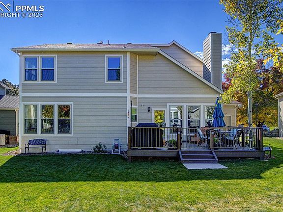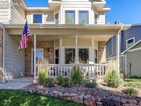Immaculate 2-story residence nestled in the coveted Peregrine North Valley neighborhood, with effortless access to hiking trails, biking routes, and the expansive 384-acre Blodgett Open Space. Situated within the esteemed Academy School District 20, this tastefully updated home boasts 5 bedrooms, 4 baths, a 3-car garage, and an expansive open floor plan. Upon entry, gleaming hardwood floors grace the main level leading to a formal living room with a bay window overlooking the inviting covered front porch. A formal dining room sets an elegant tone, while the open family room with vaulted ceilings, a cozy brick fireplace, and access to the generous backyard deck creates a warm and inviting space. This private deck is the perfect setting to sip your morning coffee or host a delightful BBQ with friends & family and enjoy wildlife sightings. The chef's kitchen is a dream, offering ample cabinet & counter space, granite tile counters, a generous island, breakfast bar, stainless steel appliances, pantry, and a welcoming breakfast nook. Upstairs, the private master suite awaits with a well-appointed 5-piece bath with quartz counters and his-and-her walk-in closets. Down the hall are three additional bedrooms, a guest bath, and an upper-level laundry for added convenience. The fully finished basement enhances the home's versatility, providing a fifth bedroom & bath, and a generously sized family room. Additional features include central air conditioning, ceiling fans, new fixtures & lighting, wood flooring, abundant storage, newer exterior paint, newer furnace, low maintenance yard. A short walk to D-20 Woodmen Roberts Elementary School, tennis courts, parks or the Blodgett Open Space Trailhead & Easy access to I-25 and downtown Colorado Springs, the Air Force Academy, restaurants, shopping, and entertainment. Don't miss the opportunity to make this exceptional property your new home, combining comfort and convenience in one of Colorado Springs' most desirable neighborhoods.