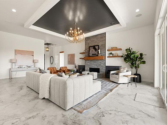 Grand islandCozy outdoor fire pitOpulent primary suiteElegant coffered ceilingTwo separate vanitiesFree-standing soaking tubAdjacent dining room