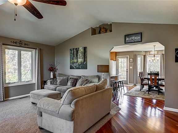 Welcome home to this Meticulous Ranch! Owners have renovated throughout with beautiful Brazilian hardwoods, solid kitchen tops, completely renovated bathrooms. Main level offers master retreat, master en suite, convenient laundry and two additional guest rooms, formal living room, large dining space open to the kitchen. Full finished walk out lower level with additional full bathroom, family room, 4th bedroom and kitchenette area. Nature lovers dream home, this home sits on 5 acres of mostly wooded property. Deck on main level formal dining, large garage and tons of storage. Lucky you, this gorgeous property is a rare find in high demand!