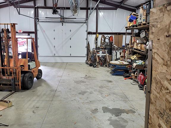 Commercial property with a 2100 sf metal building on 1 Acre. Concrete floors, 220electricity, two 10 ft overhead doors. Radiant heat. Insulated. Mezzinine loft area with partial office. Close to State Lakes. On paved roads. Not in flood zone.