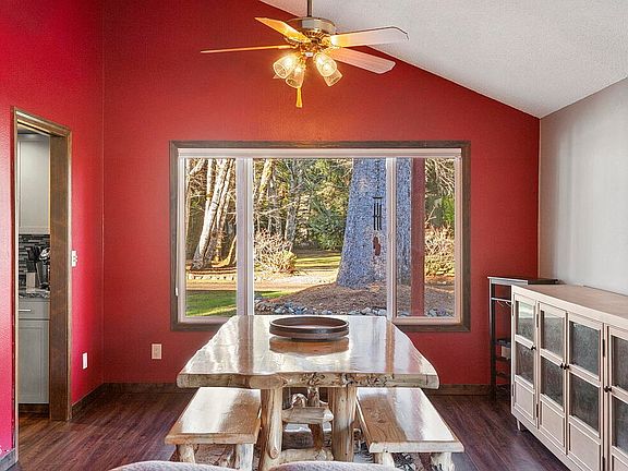 For those with a love of outdoor hobbies, the property is well-equipped. The 2-stall attached garage offers ample space for vehicles, while the separate shop includes 4 additional stalls, ideal for storing equipment or working on projects. A sliding barn door opens to a spacious work area or man cave, providing versatility for both work and play. The shop also features tons of loft space for additional storage, maximizing the property's functionality.
