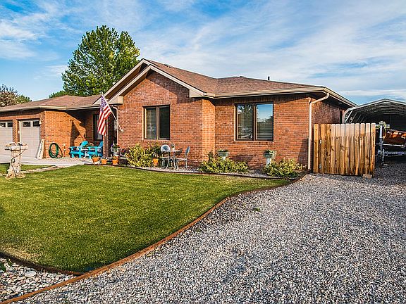 Beautiful, low-maintenance all brick, updated Ranch Style home with freshly painted interior. 1/3 acre lot with NO HOA, No CC&Rs! Master Bath Entirely remodeled 2 years ago and Master Bedroom (15'.4" x 13'.4"), updated with barn sliding doors into 2 His and Her Walk-In Closets. Kitchen cabinets updated with white chalk paint in 2017 with lots of cabinets, 2 Lazy Susan corner cupboards, a large-deep pantry and built in desk or coffee bar area and eat-in bar as well as dining area with bay window looking out 4 south facing windows; Dishwasher, Stove, Microwave and French-Door Refrigerator, all Black Stainless and purchased within the last 5 years. The bright living room measures 18' x 16' 3" with 5 large windows and south views to the back and custom built-in bookshelf. Two 11' x 13' guest bedrooms with large closets and new sliding mirror closet doors and ceiling fan lighting. Office/Dining room adjacent to kitchen with entry has easy access barn door. Entire home has upgraded window coverings. RV Parking and electrical on east side of home adjacent to small rear patio with Hot Tub and garage door access. Plus steel structure covered boat or parking area on west side of home. Property is Fully fenced and landscaped with sprinkler and drip system. This hidden gem is inside the Montrose city limits but, extremely quiet area, at near the end of the street/cul-de-sac so, no through traffic and nearly unknown area of town. Home is adjacent to the Black Canyon Golf Course, literally just feet away and only 5.5 miles to the Montrose Regional Airport. Home has Amazing south facing views of the San Juan Mountains!! Montrose Colorado, just 1 hour south of Grand Junction, 35 minutes north of Ouray ("The Switzerland of America") and 1+ hour north of Telluride, CO. Sunshine is the order of the day in Montrose, which enjoys an average of 245 days of sunny weather each year. Situated in the Uncompahgre Valley at an elevation of 5,800 feet, Montrose has a semi-arid climate with pleasant summers and mild winters and home to the Black Canyon National Park. This home has it all - Come live your Colorado Dream here! No contingencies and cash buyer preferred. Open to compensating realtors bringing qualified buyer.