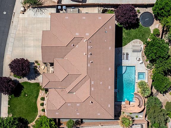 This beautifully designed property offers 6 spacious bedrooms, 4.5 bathrooms, brand new carpet throughout and an abundance of functional living spaces! On the upper level you will find 3 bedrooms, 2.5 baths, a cozy library, and stunning home office. The walkout basement features 3 additional bedrooms, each with walk in closets, including one with a private bath. On top of that, a second full bath, a full salon set up, kitchenette, storage pantry and laundry hookups make this basement ideal for hosting and relaxing. Stepping into the backyard oasis you'll find, a sparkling pool complete with a jumping rock, separate hot tub, in-ground trampoline, and a lush lawn space. A detached pool/garage storage room offers convenience for all your outdoor needs. Located in Crimson Cliffs High School and Horizon elementary boundaries, offering great academics, athletics, and extracurriculars, complete with access to the Mandarin Chinese Dual Immersion Program!