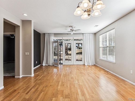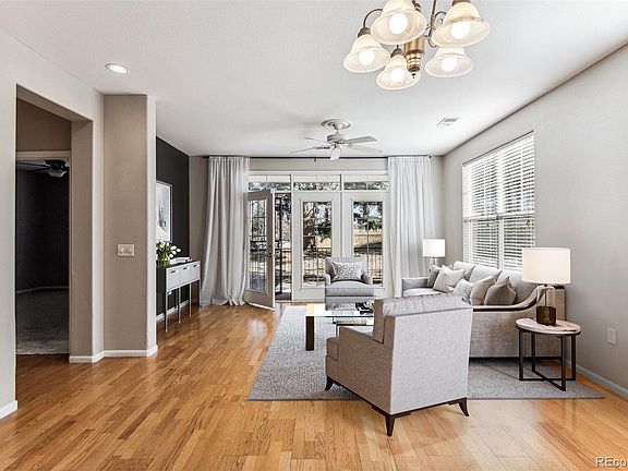 Introducing rare and highly desirable 3 Bed/2 Bath Country Club Ridge (golf community) condo in a quiet complex section, backing to a private space with lots of greenery, mature trees, and Heather Ridge Golf Course in the distance. The interior features an open concept kitchen/living area, pantry, high ceilings with oversized windows, hardwood floors, primary suite, walking closets, designated laundry (washer and dryer included), and more. ADA compliant with no steps entry. In addition, the unit comes with the convenience of two attached car garages. The property is close to transit, shopping, dining, and entertainment; it offers a practical and enjoyable place to live! The new owner receives the Heather Ridge Golf Club discount for every available item!