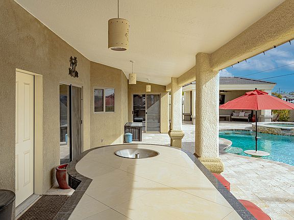 Heated poolCovered patioGarage barPool tableMassive couchDining areaLake views