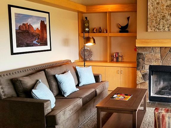 Do not apply without realizing that this is a September-May ONLY lease. 2 bdrm, 2 bath Fully furnished. 6-9 month rental ONLY. Do NOT apply without talking with us first. The owner pays for sports center, cable, and internet. 1 pre-approved dog Rent includes access to Eagle Crest resort amenities for each registered renter, pools (indoor and outdoor), gyms, tennis and pickleball courts, playgrounds, golf courses, and miles of trails. River trails and lots of trails directly in BLM land on the resort. Non Smoking property both inside and out. The HOA takes care of the lawn care and snow removal for the parking spaces and roads in Eagle Crest. Multiple restaurants and a small grocery on the resort.