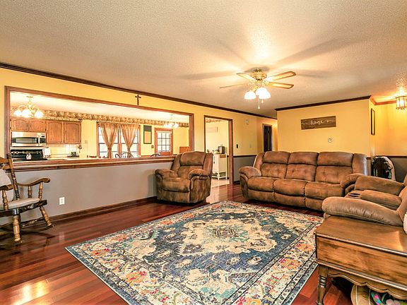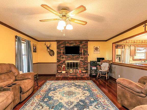 This delightful brick home is located in the delightful Loretto area of Marion County on 3.09 acres (+/-) with plenty of room to spread out! The home features 3 bedrooms, 2 full bathrooms off the hallway, a generously sized eat-in kitchen w/ a ceramic tiled backsplash & a nice breakfast bar (includes all the stainless steel appliances - refrigerator w/ pull out drawer & bottom freezer, dishwasher, radiant top stove & built-in microwave)...There is a large opening between the kitchen & living room so everyone can engage in conversation while meals are being prepared...The living room is comfortable & spacious and is highlighted by a cozy brick fireplace! You will also love having the walk-out basement featuring an awesome entertainment room w/ rustic looking barn lumber 1/2 walls...The perfect place for hanging out with the family or entertaining guests...Plus a utility room (includes the matching Hotpoint washer & dryer), a drive-in 1 car garage w/ automatic door opener & plenty of unfinished storage space...You will also love having this basement during inclement weather for peace of mind! Inside you will enjoy gorgeous hardwood flooring in the living room & hallway, carpeting in all 3 bedrooms & ceramic tile flooring in both bathrooms! As an added bonus...The central heating & air conditioning system was replaced in 2014 and the roof was replaced in 2018! Outside you can take in those gorgeous Loretto countryside views from your choice of the covered front porch or the spacious rear deck...Also lots of trees all around the property, colorful landscaping & so much more...Including a playset for the kiddies, a handy 11' X 24' metal storage building w/ a front overhead door & a rear entrance, an 8' X 12' chicken coop & even a small pond...All this on 3.09 acres (+/-) w/ approximately 630' of frontage on Spencer Hamilton Road!