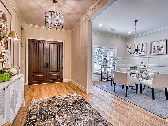 - 1st Bdrm En Suite, Breakfast Bar, Ceiling-9+, Tray Ceiling(s), Ceiling Fan(s), Beamed Ceilings, Walk-In Closet(s), Stone Counters, Crown Molding, Eat-in Kitchen, Entrance Foyer, Kitchen Island, Open Floorplan, Pantry, Split Br Floor Plan, Tub and Separate Shower, Tub/Shower Combination, Main Level Bedroom Suite, Formal Dining Room, Great Room, Custom Cabinetry