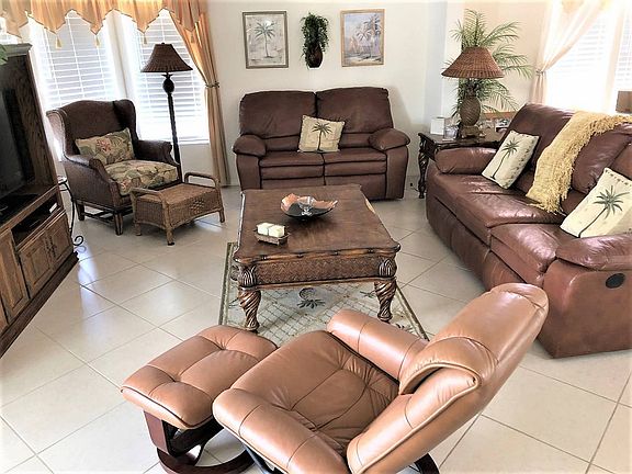 2 BR 2 BA Plus Den Or Office 2100 SQ. FT. Open Floor Plan, Fully Furnished with high end furnishings , Large kitchen with a pantry, Upgraded faucets, tiled Floors, Large Corner Lot, covered front porch, Newer appliances, Loads of Closet space, Windowed and AC in Florida Room, Double Garage, rear covered patio, Beautifully Landscaped, Newer roof, AC 6 years old, Newer Golf cart included.