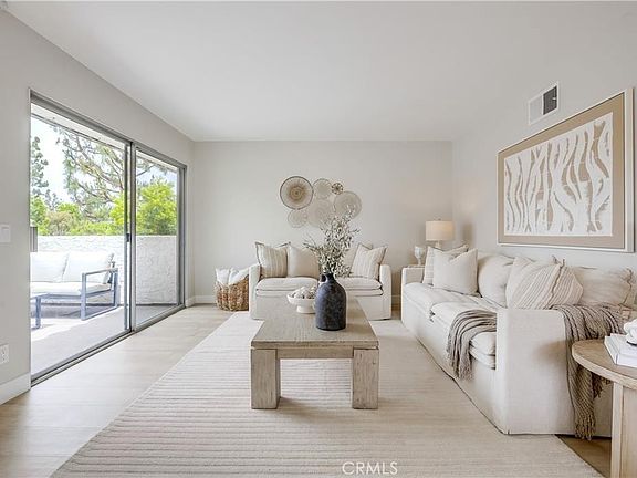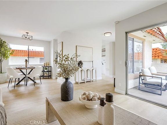 Highly updated single level carriage end unit. This great open floor plan offers lots of new upgrades, with new vinyl plank flooring through out, paint, some new appliances, new washer/dryer new baseboards, windows and blinds and new light fixtures through out. There is all new hardware through out, updated with new bathroom vanity, new faucet, mirror and toilet. There is a private patio off the living area all offering the perfect space for entertaining. This home has tons of natural light, a single car garage with an additional assigned parking space, community pool and spa. close to parks, schools and the freeway.