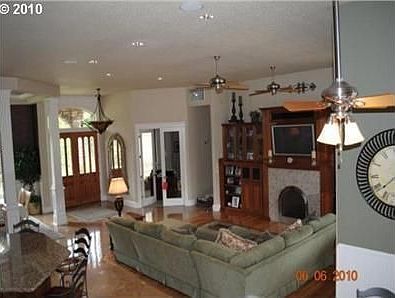 Estate on 1 acre, 4 car garage & RV parking with hookups, custom cabinets & woodwork throughout. Cedar soffits in covered patio, mature landscaping, very open & spacious, huge kitchen w/island. Great entertaining home. Travertine & marble in master suite & fireplace. Too many bells & whistles to list