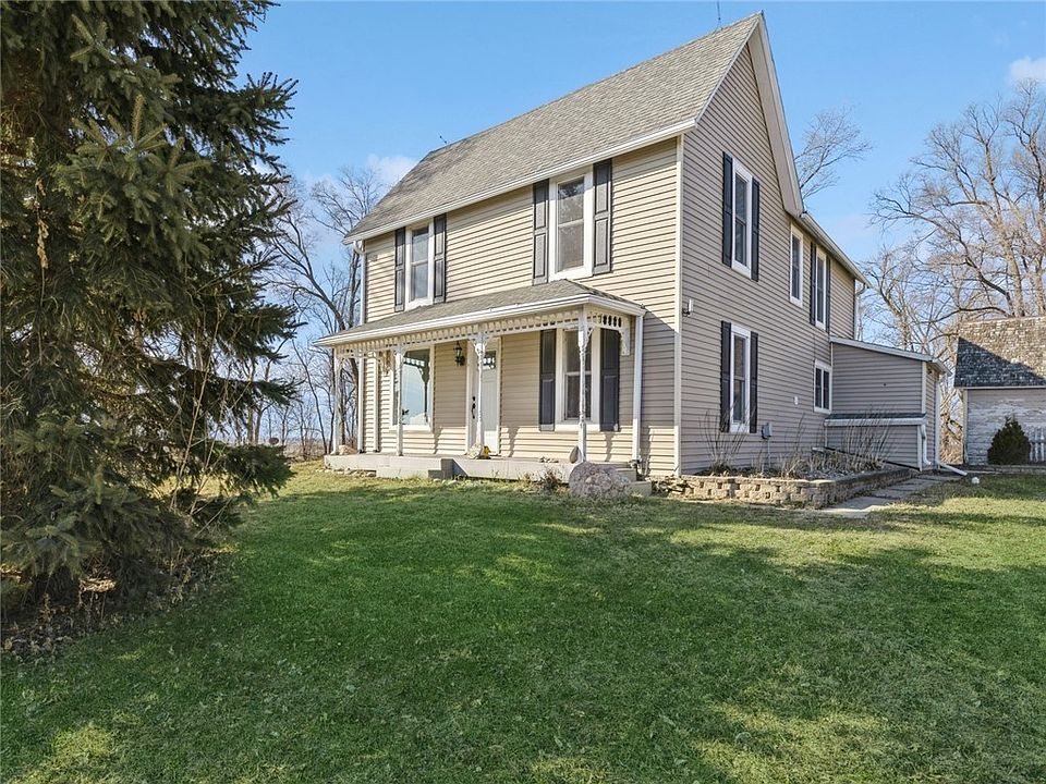 Discover a truly unique property nestled on 5.37+ acres, where two homes are gracefully enveloped by the beauty of mature trees. The first residence, an enchanting two-story farmhouse, radiates character & charm. Upon entering, the main floor beckons with an open kitchen featuring granite countertops & adorned with stainless-steel appliances, infusing a touch of modern elegance. The expansive dining room, ideal for a farmhouse table, seamlessly connects to the inviting living room, complemented by striking barn doors. Continuing through, you'll find the laundry, bath, & office space. Gracing the upper level, the farmhouse reveals four spacious bedrooms & a full bath, each exuding a sense of comfort and style. The second home, carefully reimagined, offers a cozy 1-bedroom, 1-bath haven featuring a remodeled kitchen, bathroom, closet, and original hardwood floors. Both residences have undergone recent updates, including flooring, septic systems, central air, and furnaces. The estate boasts various outbuildings and garages, providing ample space to accommodate all your needs. Tucked away in a serene location, this property offers stunning views of both sunrise and sunset, providing a peaceful escape from the hustle and bustle. Conveniently situated near Adel, Perry, and under 30 minutes to West Des Moines, this acreage seamlessly blends tranquility with accessibility. Embrace a lifestyle of comfort and sophistication in this one-of-a-kind retreat within the ADM School district.