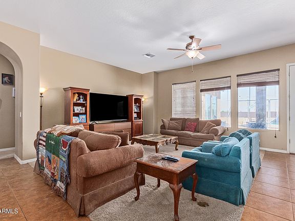 This stunning 5-bedroom, 4-bathroom home is the perfect place to call your own. Situated on an acre lot with 2 RV gates and breathtaking mountain views, this property has it all! Entertain in style with an open concept living/dining area and a bar area perfect for hosting gatherings of any size. The kitchen features maple cabinets, granite countertops and stainless-steel appliances that will make cooking a breeze. Enjoy tile flooring throughout the main living spaces with carpet in each of the bedrooms for extra comfort. There are two master suites - one at each end of the home, so you can have plenty of privacy or space to host guests! Step out into the backyard oasis featuring a sparkling pool. Don't miss out on this opportunity..