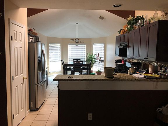 This spacious, cozy 3 bedroom brick home in an established neighborhood, features 1844 sq feet, 2 car garage, spacious master bedroom that includes a master bathroom with double granite sinks, separate shower and a garden tub. Dining and breakfast areas. Granite Counter tops. Ceramic tile in wet areas. Window coverings, ceiling fans, and a utility room inside the home. Community amenities include a community pool, basketball courts and a clubhouse.
