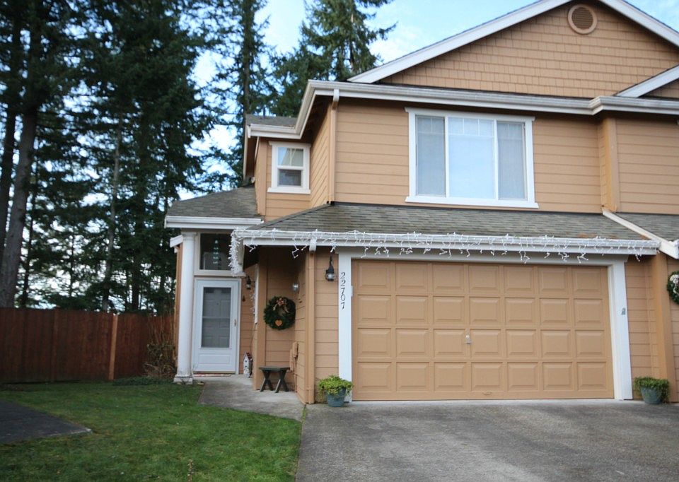 End of road privacy makes this townhome truly special. 2 bedrooms, 2 full baths, new flooring on main floor and master bath, newer carpeting. One year old furnace and brand new microwave. High ceilings in living area give you a feeling of spaciousness. Large backyard is fenced. Back fence is way inside property line. HOA covers exterior home maintenance and landscaping. Award winning Tahoma schools. Lots of storage space in the 2 car garage.